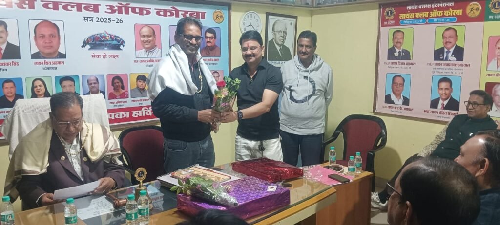 कोरबा। लायंस क्लब ऑफ कोरबा द्वारा रीजन एवं जोन चेयरमेन की आधिकारिक यात्रा एवं संचालक मंडल की बैठक दिनांक 8 जनवरी को लायंस स्कूल टी.पी. नगर कोरबा में आयोजित की गई। कार्यक्रम में रीजन 2 के रीजन चेयरमेन एमजेएफ लायन एस.के. अग्रवाल एवं एमजेएफ लायन रोहित राजवाड़े जोन चेयरमेन व अध्यक्ष लायंस क्लब ऑफ कोरबा उपस्थित रहे। अतिथियों का पुष्पगुच्छ से स्वागत कर मीटिंग की कार्यवाही की गयी, तत्पश्चात् अधिकारिक यात्रा में क्लब के परमानेंट प्रोजेक्ट एवं स्क्रेप व एलबम बुक का अवलोकन कराया गया। साथ ही क्लब की अन्य गतिविधियों से भी अवगत कराया। क्लब सचिव लायन रविशंकर सिंह द्वारा वर्षभर किये गये कार्यो का सचिव प्रतिवेदन प्रस्तुत किया गया। रीजन एवं जोन चेयरमेन द्वारा सारगर्भित उद्बोधन दिया गया। उपस्थित अतिथियों को मोमेंटो भेंटकर सम्मानित किया गया। अंत में सभी लायन साथियों का आभार व्यक्त कर कार्यक्रम का समापन किया गया।
