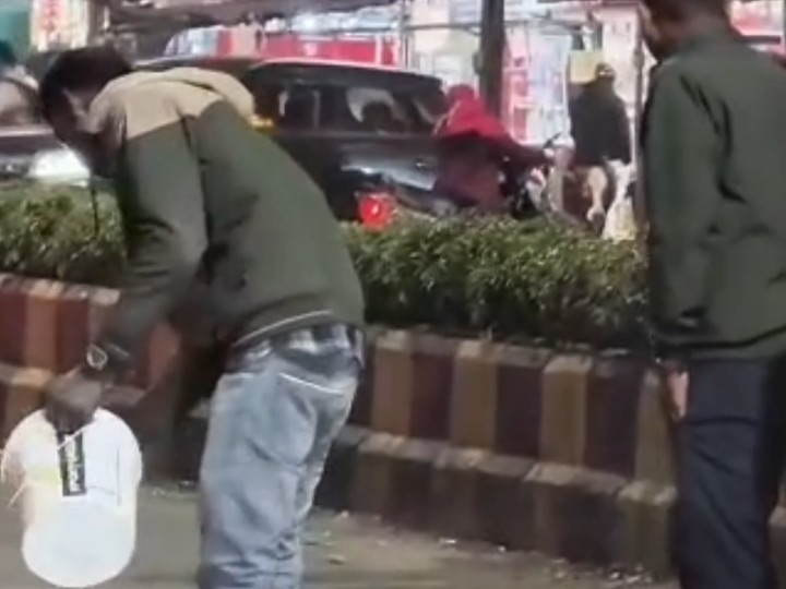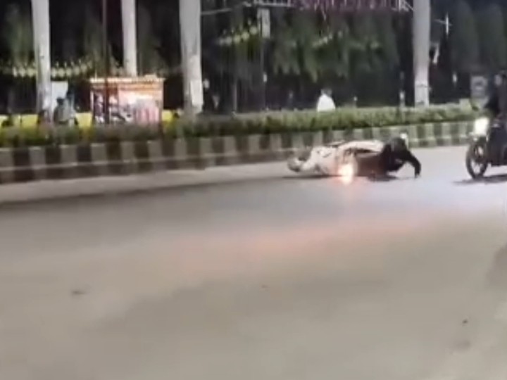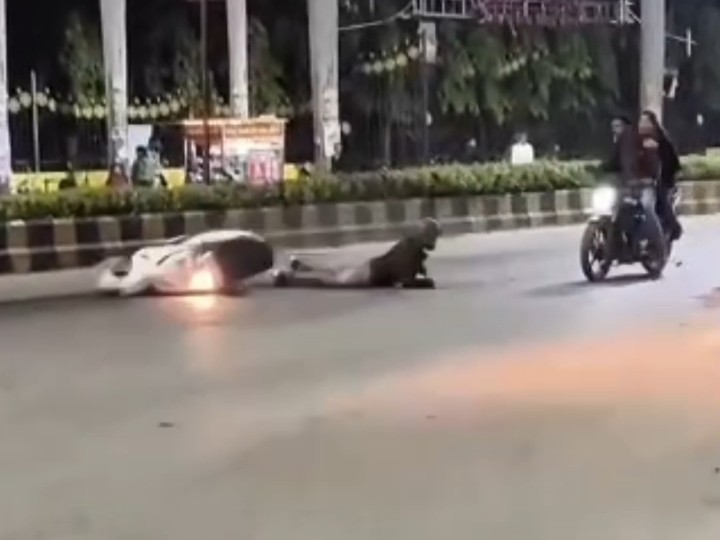 सड़क पर गिरा तेल, फिसलकर गिरे बाइक सवार