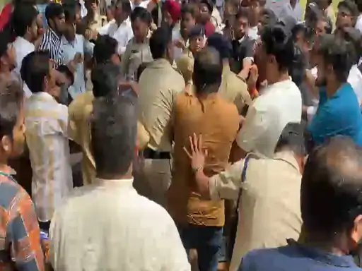 मौके पर मौजूद पुलिसकर्मियों ने उन्हें रोकने की कोशिश की तो उनसे धक्का-मुक्की की गई। इस दौरान पुलिस कर्मियों को भी कार्यकर्ताओं ने पीटा। किसी तरह पुलिस ने मामला शांत कराया। बताया जा रहा है कि सारा विवाद पोस्टर फाड़ने को लेकर हुआ है। मारपीट का वीडियो भी सामने आया है।