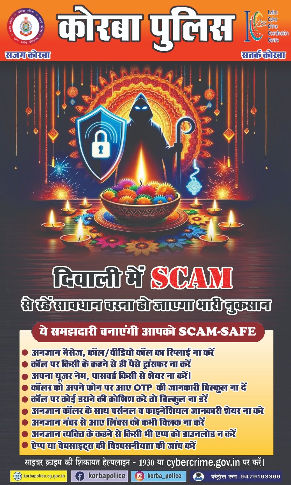 दीपावली के अवसर पर कोरबा पुलिस ने साइबर स्कैम से बचने के लिए जारी की एडवाइजऱी
