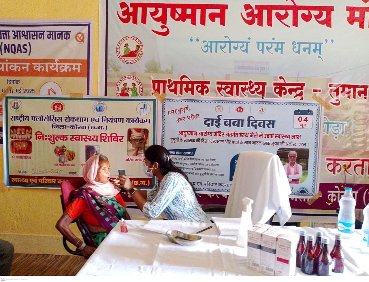 “कोरबा। कलेक्टर अजीत वसंत के मार्गदर्शन तथा मुख्य चिकित्सा एवं स्वास्थ्य अधिकारी डॉ.एस.एन..केशरी के नेतृत्व में 04 जून को जिले के समस्त आयुष्मान आरोग्य मंदिरों में “ हमारे बुजुर्ग हमारी धरोहर“ थीम के साथ स्वास्थ्य मेला दाई-बबा दिवस मनाया गया। इस अवसर पर उपस्थित जिले के वरिष्ठ नागरिकों का स्वास्थ्य परीक्षण एवं सम्मान कार्यक्रम आयोजित किया गया। हेल्थ मेला में उपस्थित वरिष्ठजनो, पेशनर्स का तिलक लगाकर एवं पुष्प माला पहनाकर, श्रीफल देकर सम्मानित किया गया। इसके साथ ही उनका बीपी, शुगर,, नाक-कान-गला, वृद्धजनों को होने वाली परेशानी, हड्डियों से संबंधित परेशानी, नेत्र जॉंच, मोतियाबिन्द, मानसिक जाँच जैसे संपूर्ण जॉच निःशुल्क किया गया तथा दवाईयॉ तथा स्वास्थ्य कार्ड वितरित किया गया। आयुष विभाग द्वारा उन्हे स्वस्थ्य जीवनशैली , योग के बारे में जानकारी दिया गया। जिन बुजुर्गों का आयुष्मान कार्ड, आभा आईडी, वयवंदन कार्ड नहीं बना था उसे बनाया गया।