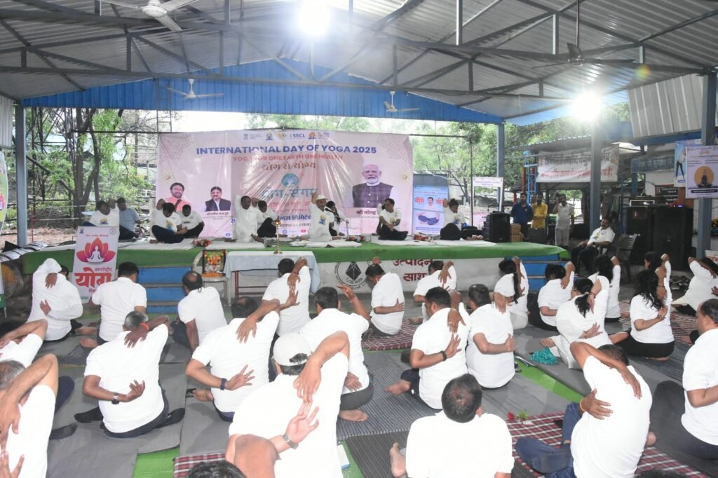Bilaspur/korba. On the occasion of the 11th International Day of Yoga on 21st June 2025, South Eastern Coalfields Limited (SECL) organized mass yoga sessions across its Headquarters in Bilaspur and various Areas and Projects. The grand event saw more than 16,000 participants performing yoga at over 30 different locations, spreading the message of health, peace, and balanced living.