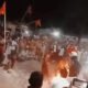शोभायात्रा में महिला काली मां बनी करतब दिखा रही थी, अचानक आग की चपेट में आ गई।