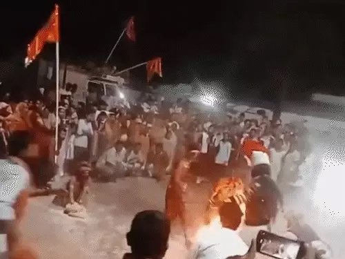 करतब के दौरान कलाकार मुंह में ज्वलनशील पदार्थ लेकर आग के साथ प्रदर्शन कर रहे थे। इसी दौरान काली मां बनी एक महिला अचानक आग की चपेट में आ गई। आग लगते ही वह खुद को बचाने के लिए इधर-उधर भागने लगी। उसे बचाने के प्रयास में उसके दो अन्य साथी भी आगे आए, वे भी आग की चपेट में आ गए।