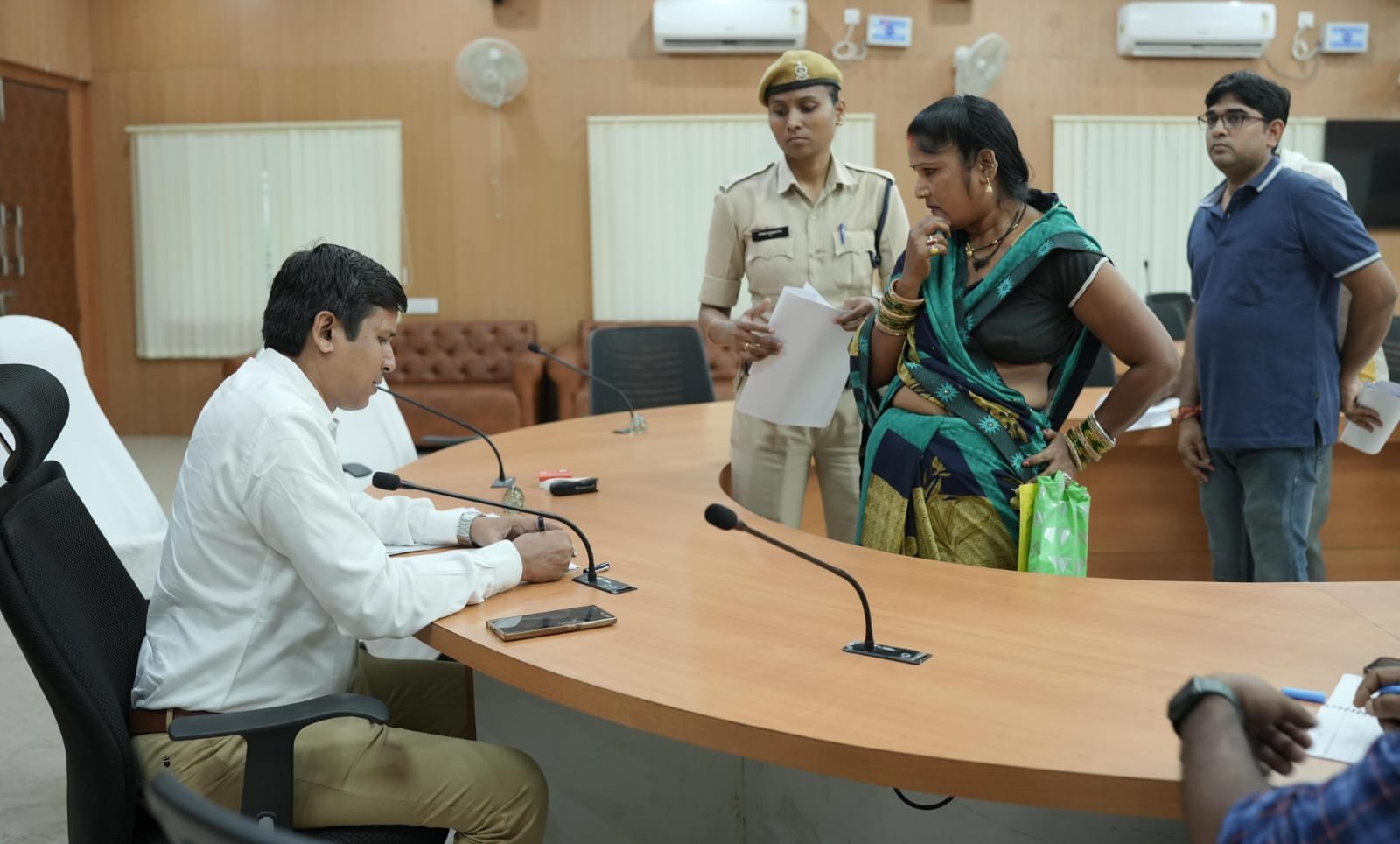 कोरबा । अपर कलेक्टर दिनेश कुमार नाग ने आज कलेक्टोरेट सभाकक्ष में आयोजित जनदर्शन में जिले के अलग-अलग क्षेत्रों से आए ग्रामीणों एवं आम नागरिकों की समस्याओं को गंभीरता से सुना एवं सम्बंधित अधिकारियों को आवेदनों का जांच कर गुणवत्तापूर्ण निराकरण करने के निर्देश दिए। जनदर्शन में आज ग्राम तिलकेजा के ग्रामीण बसंत राव शिंदे ने फौती नामांतरण, ऋण पुस्तिका बनाने के लिए पटवारी द्वारा पैसा मांगने तथा ऋण पुस्तिका नहीं बनाने की शिकायत करते हुए संबंधित पटवारी के विरूद्ध कलेक्टर से कार्यवाही की मांग की। अपर कलेक्टर ने तहसीलदार को आवेदन प्रेषित कर इस मामले की जांच कर आवश्यक कार्यवाही करने के निर्देश दिए हैं। जनदर्शन में राजस्व अभिलेख, विद्युत विभाग, ट्राइसाइकल की मांग, जमीन विवाद तथा अपनी जमीन अन्य लोगों द्वारा कब्जा किए जाने की शिकायत की है। रूमगरा की श्रीमती फूलबाई कंवर ने जनदर्शन में कलेक्टर को शिकायत की है कि उनके खसरा नंबर 813/5 रकबा 0.53 को गैर आदिवासी द्वारा कब्जा किया जा रहा है। उन्होंने अपनी शिकायत में नंदकिशोर, बाबूचंद, मतिबाई पर आरोप लगाते हुए कहा है कि कब्जा धारियों द्वारा उनके हक की ज़मीन पर कब्जा कर अनावश्यक विवाद उत्पन्न किया जा रहा है।