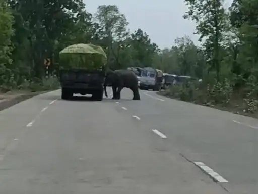 हाथी का रौद्र रूप देखकर सभी लोग डर गए और हंगामा मच गया। जिसके चलते सड़क के दोनों तरफ यात्री बस समेत बाकी वाहनों की लंबी कतार लग गई। हाथी भी आधे घंटे तक सड़क पर इधर-उधर घूमता रहा। हाथी कभी ट्रक को धक्का देता नजर आया कभी सड़क के दोनों तरफ वाहन की तरफ दौड़ता रहा।