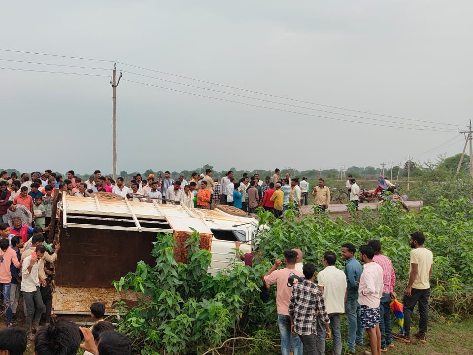 खैरागढ़ में मजदूरों से भरी पिकअप पलटी, 24 घायल:खेत में काम कर लौट रहे थे, मोड़ पर ब्रेक नहीं लगाने से बिगड़ा बैलेंस