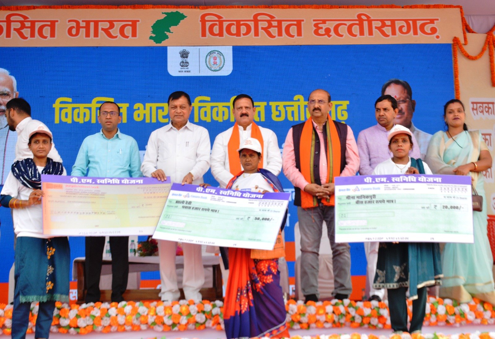 विकसित भारत विकसित छत्तीसगढ़ कार्यक्रम में मुख्य अतिथि कैबिनेट मंत्री देवांगन ने सरकार की अनेक कल्याणकारी योजनाओं से अनेक हितग्राहियों को लाभान्वित किया। जिसके अंतर्गत नगर निगम कोरबा क्षेत्र की श्रीमती धनमती पटेल, श्रीमती बसंती बाई चंद्रा, श्रीमती सुनिता यादव, राजेश खरे, बलदाऊ प्रसाद खरे को प्रधानमंत्री आवास योजना का लाभ दिया गया। इसी प्रकार समाज कल्याण विभाग द्वारा पन्ना लाल बांधे, संदीप लाल, संतराम आदिले, लक्ष्मी प्रसाद निषाद व चमरा दास महंत को मोटराइज्ड ट्राइसायकल प्रदान किया गया। खाद्य विभाग के अंतर्गत श्रीमती श्वेता झा, रेखा देवी, शीला टंडन, श्रद्धा पात्रे, व निशा साह को प्रधानमंत्री उज्जवला गैस कनेक्शन एवं ममता ठाकुर, रानी, मेमिन बाई कर्ष, केसर बाई गबेल, जानकी बाई पटेल को राशन कार्ड वितरित किया गया। स्वास्थ्य विभाग द्वारा कृषनी देवांगन, बबिता साहू, दीप माला यादव, संतोषी साहू, सालिक केशरवानी, भावना राठौर, अपर्णा राठौर, लक्ष्मी राठौर, भगवती यादव को आयुष्मान कार्ड प्रदान किया गया। प्रमिला बाई, तुलसी बाई को मुख्यमंत्री नोनी सशक्तिकरण सहायता योजना, श्यामला मंझवार, कुमारी बाई को मिनीमाता महतारी जतन, बिसुन लाल, श्याम बाई राठिया को मुख्यमंत्री निर्माण श्रमिक मृत्यु व दिव्यांग सहायता योजना, नाजिया, झालो देवी, मीना मानिकपुरी को पीएम स्वनिधि योजना एवं मेघा साहू, सरिता साहू, दुर्गा साहू, पूर्णिमा साहू, आंनद बाई यादव, रामेश्वरी साहू, काजल साहू, प्रीति साहू, रीता साहू, भूमिका यादव को पीएम विश्वकर्मा योजना के तहत प्रशिक्षण उपरांत प्रमाण पत्र प्रदान किया गया।