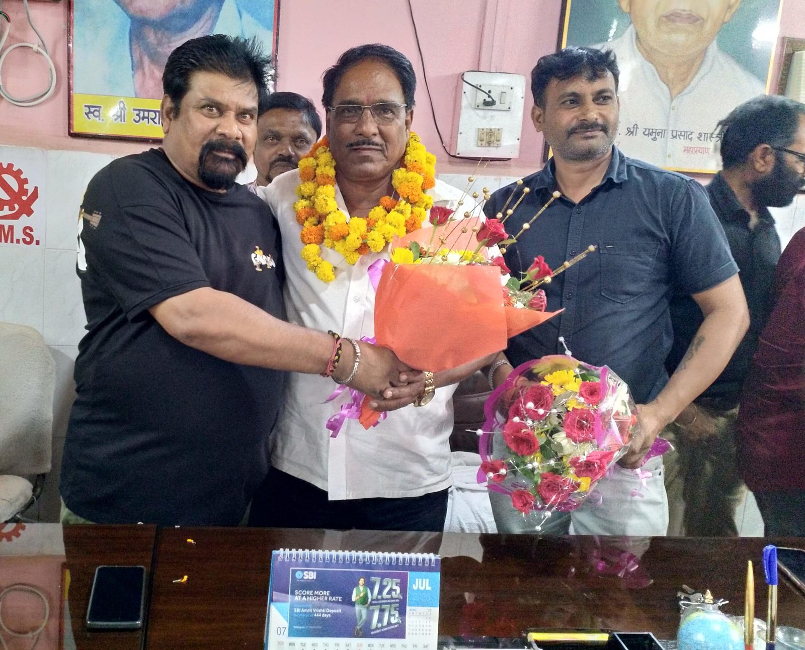 गेवरा-दीपका। श्रमिकों की आवाज बुलंद करने वाले नेता रेशमलाल यादव को हिंद खदान मज़दूर फेडरेशन (एचएमएस) यूनियन के राष्ट्रीय अध्यक्ष बनने पर प्रसिद्ध कवि प्रभाकर शुक्ला ने पुष्प गुच्छ भेंट कर शायराना अंदाज में बधाई दी।