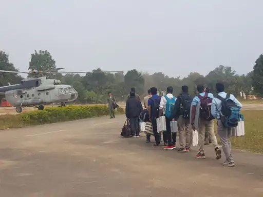 वायुसेना के हेलिकॉप्टर से गांवों तक पहुंचे मतदानकर्मी