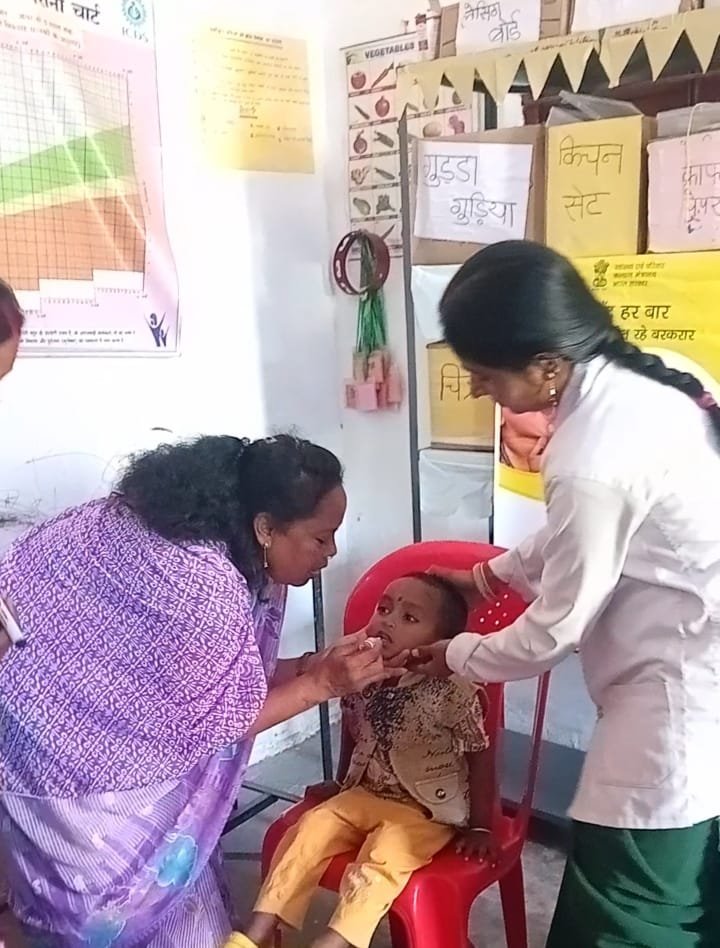 स्वास्थ्य विभाग के तत्वावधान में 180 बच्चों को पिलाई गई पोलियो ड्रॉप