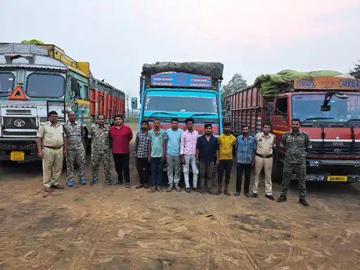 घेराबंदी के दौरान पुलिस ने संदिग्ध रूप से गुजर रहे 6 ट्रकों और 1 माजदा वाहन को रोका। जांच में वाहनों में लोहे के मशीनरी पार्ट्स, एंगल, छड़ सहित बड़ी मात्रा में स्क्रैप लोड मिला। प्रारंभिक जांच में जानकारी मिली कि स्क्रैप को स्थानीय प्लांट में खपाने की योजना थी।