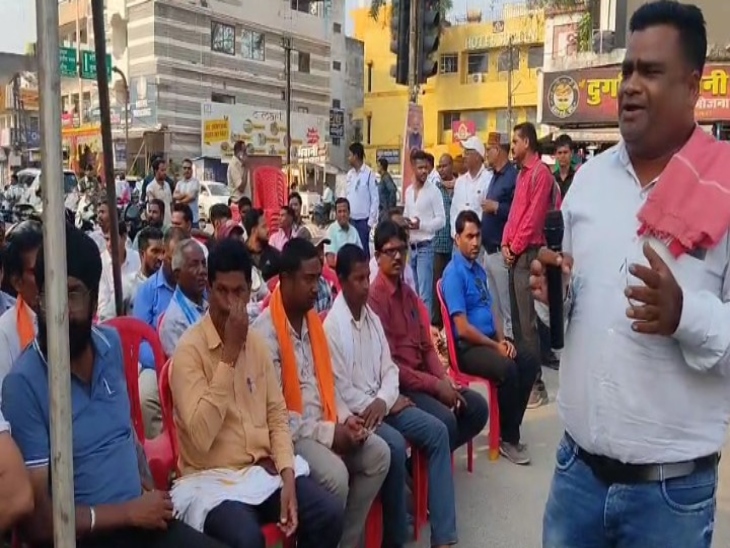 कोरबा में बदहाल सड़क को लेकर प्रदर्शन:ट्रांसपोर्ट नगर चौक पर सैकड़ों की संख्या में लोगों ने दिया धरना, जिला प्रशासन को जिम्मेदार ठहराया