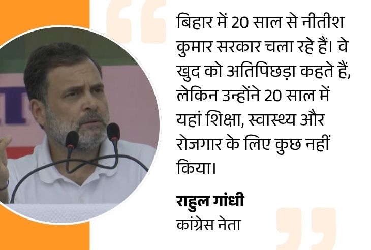 राहुल ने PM मोदी और नीतीश कुमार पर जमकर निशाना साधा। उन्होंने कहा, ‘मोदी जी वोट के लिए कोई भी नाटक कर सकते हैं। उन्हें बस आपका वोट चाहिए। अगर आप मोदी जी को नाचने के लिए कहेंगे, तो वह नाचेंगे भी।