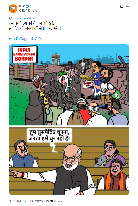 बीजेपी ने X हैंडल पर एक पोस्ट में कहा, ‘तुम घुसपैठियों की सेवा में लगे रहो, हम देश की जनता की सेवा करते रहेंगे।’ बीजेपी प्रवक्ता अमित मालवीय ने कहा- राहुल गांधी हारने पर ईवीएम और वोट चोरी पर सवाल उठाते हैं, लेकिन जीत मिलने पर वही प्रक्रिया मान लेते हैं। बिना सबूत चुनाव नतीजों पर सवाल उठाना गलत है और इससे लोकतंत्र और जनता का भरोसा कमजोर होता है।