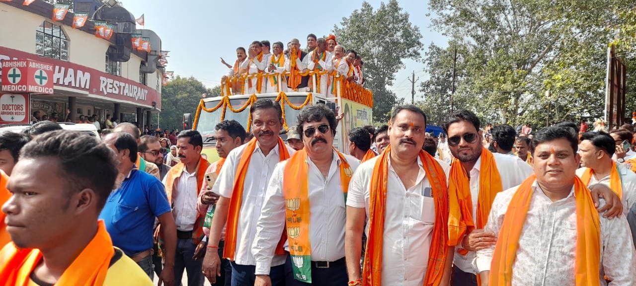 भाजपा प्रत्याशियों की नामांकन रैली में रेलमपेल भीड़