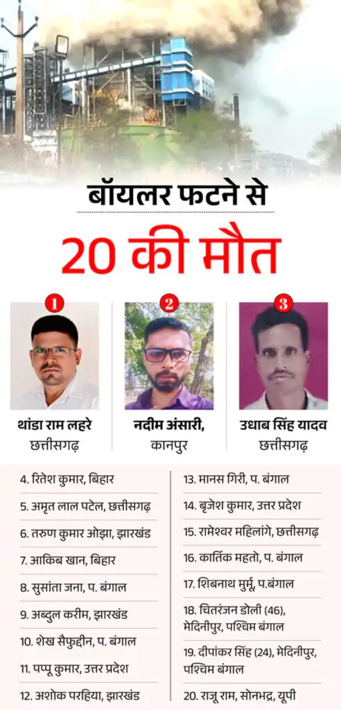 छत्तीसगढ़ पावर प्लांट हादसा, 20 मौतें, 36 झुलसे:प्रोडक्शन बढ़ाने की जल्दबाजी में फटा बॉयलर, चेतावनी के बावजूद नहीं रोका काम, अब होगी FIR