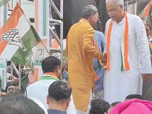 रायपुर दक्षिण उपचुनाव…बैज ने नहीं थामा भूपेश का हाथ, :आकाश के प्रचार वाहन पर बघेल ने महंत को हाथ पकड़कर चढ़ाया; दीपक का इनकार