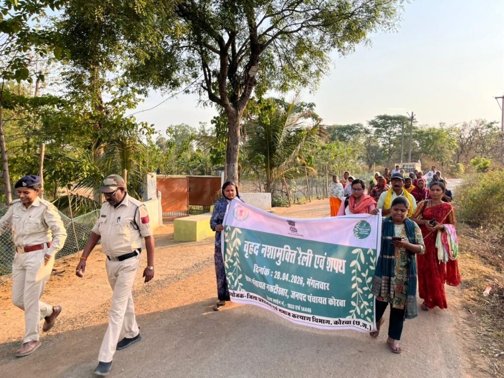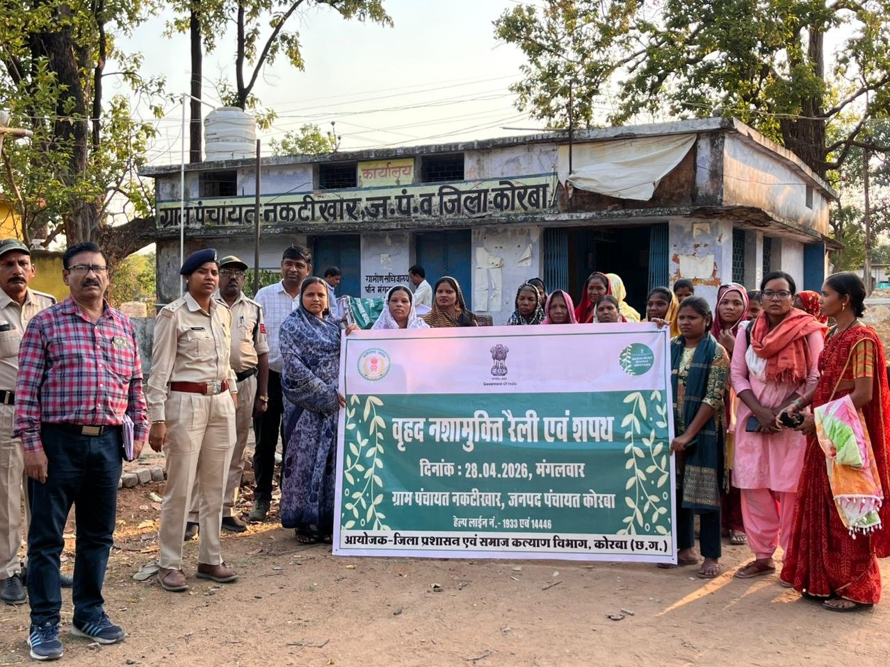 नशामुक्त कोरबा की ओर बड़ा कदम:नकटीखार में भव्य नशामुक्ति रैली, जन-जागरूकता का आयोजन