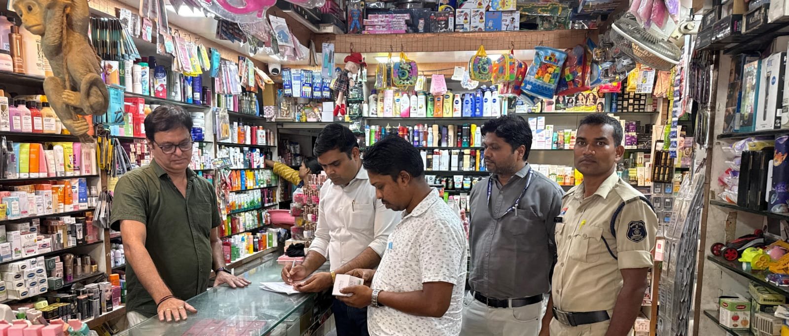 अभियान के दौरान दीपक ट्रेडर्स रानी रोड, वृंदावन एजेंसी, कन्हैया एजेंसी दर्री रोड, खूबसूरत कॉस्मेटिक शॉप, श्रुति श्रृंगार, ज़ी महासेल निहारिका, इंडिया सेल निहारिका रोड, संजरी बैंगल्स मेन रोड तथा मोहन्नम एजेंसी टीपी नगर सहित विभिन्न प्रतिष्ठानों में भी जांच की गई।