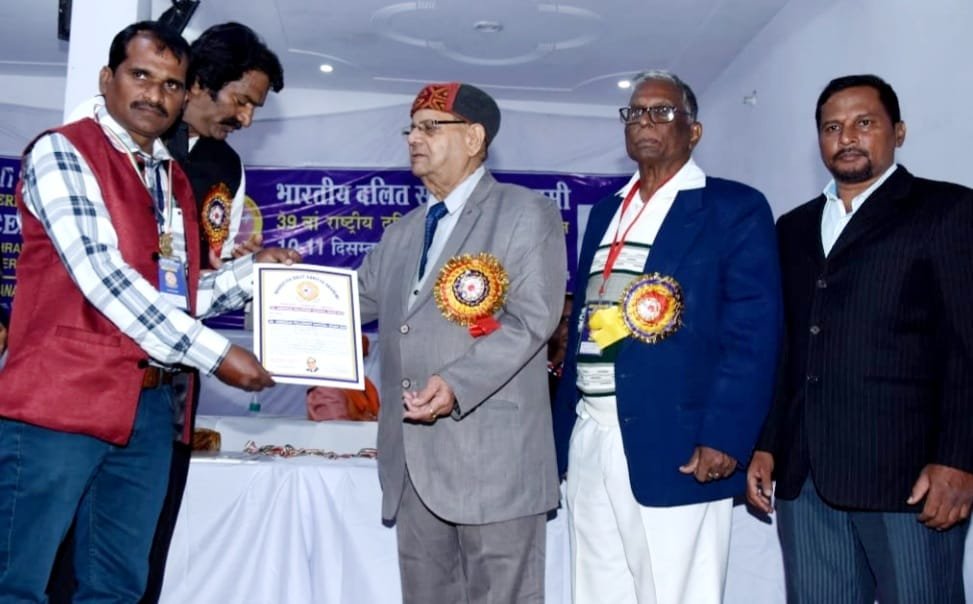 कोरबा। भारतीय दलित साहित्य अकादमी पंचशील आश्रम झड़ौदा बुराड़ी निरंकारी समागम ग्राउंड के सामने रिंग रोड दिल्ली में डॉ. भीमराव अम्बेडकर राष्ट्रीय अवॉर्ड से राजेश यादव को सम्मानित किया गया। ज्ञात हो कि 10-11दिसंबर 2023 को दो दिवसीय सम्मेलन में देश विदेश सभी भाषाओं में जुटे साहित्यकार, पत्रकार, लेखक, संपादक समजासेवी आदि लोगों ने भाग लिया। जिसमें विभिन्न विषयों पर विचार विमर्श किया गया। सम्मेलन के पहले दिवस सम्मान समारोह आयोजित किया गया। इस दिवस को कार्यक्रम में विभिन्न क्षेत्रों में किए गए विशिष्ठ कार्यों के लिए अवार्ड दिए गए। डॅा. भीमराव अम्बेडकर राष्ट्रीय अवॉर्ड कोरबा छत्तीसगढ़ से राजेश यादव को दलित साहित्य अकादमी के राष्ट्रीय अध्यक्ष डॉ. सोहन पाल सुमनाक्षर द्वारा दिया गया। इस कार्यक्रम में देश विदेश से दस हजार से अधिक लोग आए हुए थे। श्री यादव समाज सेवा के विभिन्न क्षेत्रों में अग्रणी रचनात्मक प्रदर्शन करते हुए शिक्षा,कला,साहित्य महिला सशक्तिकरण पर्यावरण,संस्कृति, व्यक्तिव विकास, दीन दुखियों की सेवा में आवश्यकतानुसार महत्त्वपूर्ण योगदान करने के लिए श्रेष्ठ भूमिका का परिचय दिया है। इस अवसर पर छत्तीसगढ़ से जी आर बंजारा प्रांताध्यक्ष, राजेश यादव सामाजिक कार्यकर्ता,प्रदीप परमार सोशल वर्कर गुजरात, डॉ अजय वर्मा, झारखंड, राजकुमार गजमेर सिक्किम,प्रो कमल बौद्ध पटना बिहार, डॉ आर सी सिसोदिया पूर्व सी एम् एच ओ मध्यप्रदेश, दीपक पाण्डेय उड़ीसा, महेंद्र कुमार सिंह मनीपुर,पेल्लप्पा बवाराज कर्नाटक,राम बहादुर मल्ला नेपाल,प्रदीप टी पल्लकाथ साहित्यकार केरल, डॉ रामगोपाल भारतीय दलित साहित्यकार मेरठ उत्तरप्रदेश, धर्मेंद्र कुमार रविकुल साहित्यकार कोटा राजस्थान, जनरैल सिंह संपादक कुरुक्षेत्र हरियाणा,श्रीमती प्रिया सिंह मेघवाल अंतर्राष्ट्रीय गोल्डमेडल विजेता जयपुर राजस्थान, मिस रंजू मोनी डेका कामरूप आसाम, प्रेम बहादुर कार्की चेयरमैन चंद्र काठमांडू नेपाल आदि उपस्थित रहे।