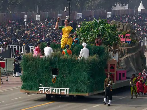स्वतंत्रता सेनानियों के बलिदानों को महत्व, तीसरी बार परेड में शामिल हुई झांकी तेलंगाना की झांकी में कोमारमभीम, चकली इलम्मा, रामजी गोंड और अन्य जैसे तेलंगाना के स्वतंत्रता सेनानियों के बलिदानों को दर्शाया गया। तेलंगाना की झांकी तीसरी बार कर्तव्य पथ पर नजर आई।