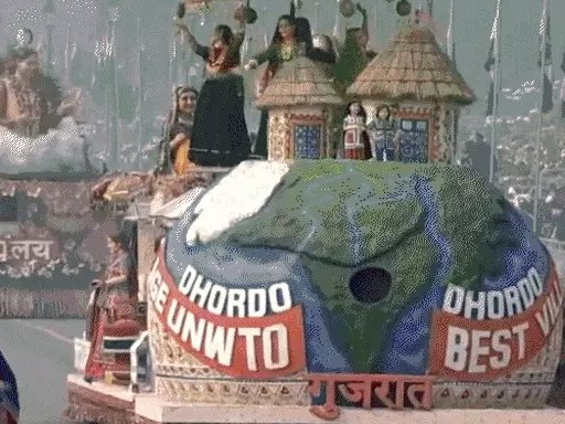 गुजरात की झांकी को धोर्डो गांव पर फोकस रखा गया। यह गांव बेस्ट टूरिज्म विलेज के रूप में जाना जाता है। इसे एन ने दुनिया के 54 टूरिज्म विलेज में जगह दी है। झांकी में गांव के भुंगा घर, रोगन कला, रण उत्सव, टेंट सिटी दिखाई गई।