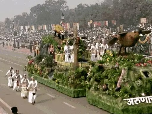 अरुणाचल प्रदेश की झांकी पक्षियों पर बेस्ड रही। इसमें बुगुन लिओसिचला पक्षी को दिखाया गया। जिसे सबसे पहले अरुणाचल प्रदेश में ही साल 2006 में खोजा गया था। इसके अलावा झांकी में स्थानीय कलाकार डांस करते नजर आए।