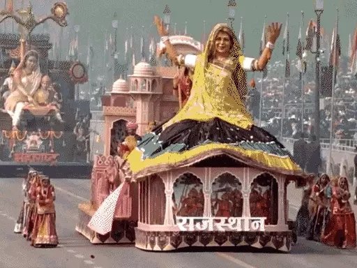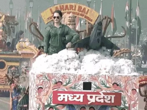 सबसे आगे मध्य प्रदेश की पहली महिला फाइटर पायलट अवनी चतुर्वेदी का स्टैच्यू है। साथ में एक फाइटर प्लेन का मॉडल है। झांकी में बर्तनों पर पेंटिंग करती महिला कलाकारों, चंदेरी के बादल महल द्वार और चंदेरी, महेश्वर और बाग प्रिंट साडिय़ों के बुनकरों को भी दर्शाया गया है सबसे आगे मध्य प्रदेश की पहली महिला फाइटर पायलट अवनी चतुर्वेदी का स्टैच्यू है। साथ में एक फाइटर प्लेन का मॉडल है। झांकी में बर्तनों पर पेंटिंग करती महिला कलाकारों, चंदेरी के बादल महल द्वार और चंदेरी, महेश्वर और बाग प्रिंट साडिय़ों के बुनकरों को भी दर्शाया गया है राजस्थान की झांकी- मीरा बाई और घूमर नृत्य