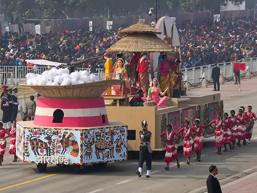 राजस्थान की झांकी महिला हस्तशिल्प उद्योगों के विकास और राज्य की उत्सव संस्कृति को प्रदर्शित कर रही है। झांकी में राजस्थान की कठपुतली कला देखने को मिली। हस्तशिल्प परंपराओं बंधेज, बगरू प्रिंट भी नजर आया। राजस्थान की झांकी महिला हस्तशिल्प उद्योगों के विकास और राज्य की उत्सव संस्कृति को प्रदर्शित कर रही है। झांकी में राजस्थान की कठपुतली कला देखने को मिली। हस्तशिल्प परंपराओं बंधेज, बगरू प्रिंट भी नजर आया। झारखंड की झांकी- तसर उत्पादन के साथ सोहराय और कोहबर पेंटिंग