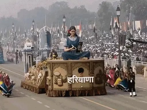 हरियाणा की झांकी में सरकारी कार्यक्रम मेरा परिवार – मेरी पहचान पर फोकस किया गया। इसके जरिए महिला सशक्तिकरण को केंद्र में रखा गया। झांकी में हरियाणवी छात्राएं डिजिटल गैजेट पकड़े हुए नजर आईं।