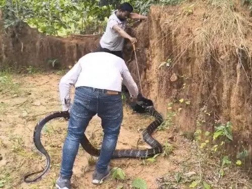 करीब डेढ़ घंटे तक चले रेस्क्यू ऑपरेशन के दौरान किंग कोबरा ने कई बार फुफकार कर अपना आक्रामक रूप दिखाया। हालांकि, टीम ने धैर्य और सावधानी बरतते हुए किंग कोबरा को सुरक्षित रूप से एक थैले में डाल दिया। सफल रेस्क्यू के बाद ग्रामीणों ने राहत की सांस ली।