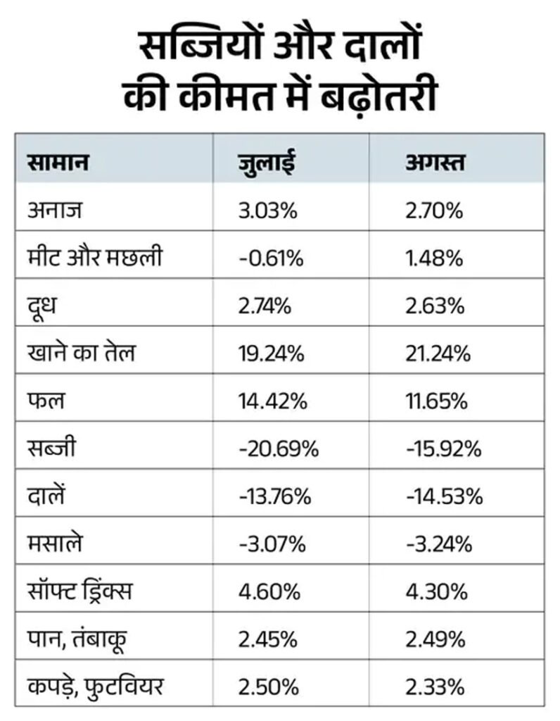 अगस्त में खाने-पीने के सामानों की कीमत बढ़ी