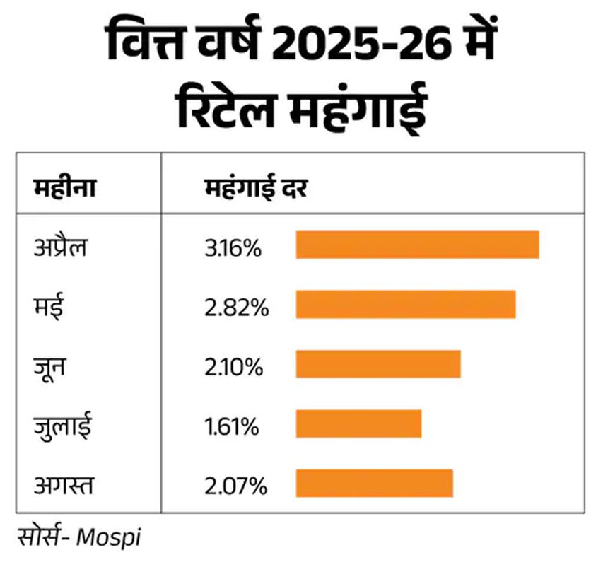 4 से 6 अगस्त तक हुई RBI मॉनीटरी पॉलिसी कमेटी की मीटिंग में भी वित्त वर्ष 2025-26 के लिए महंगाई का अनुमान 3.7% से घटाकर 3.1% कर दिया था।