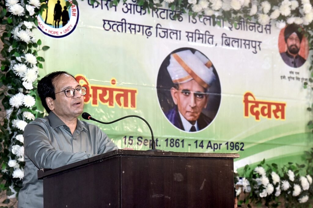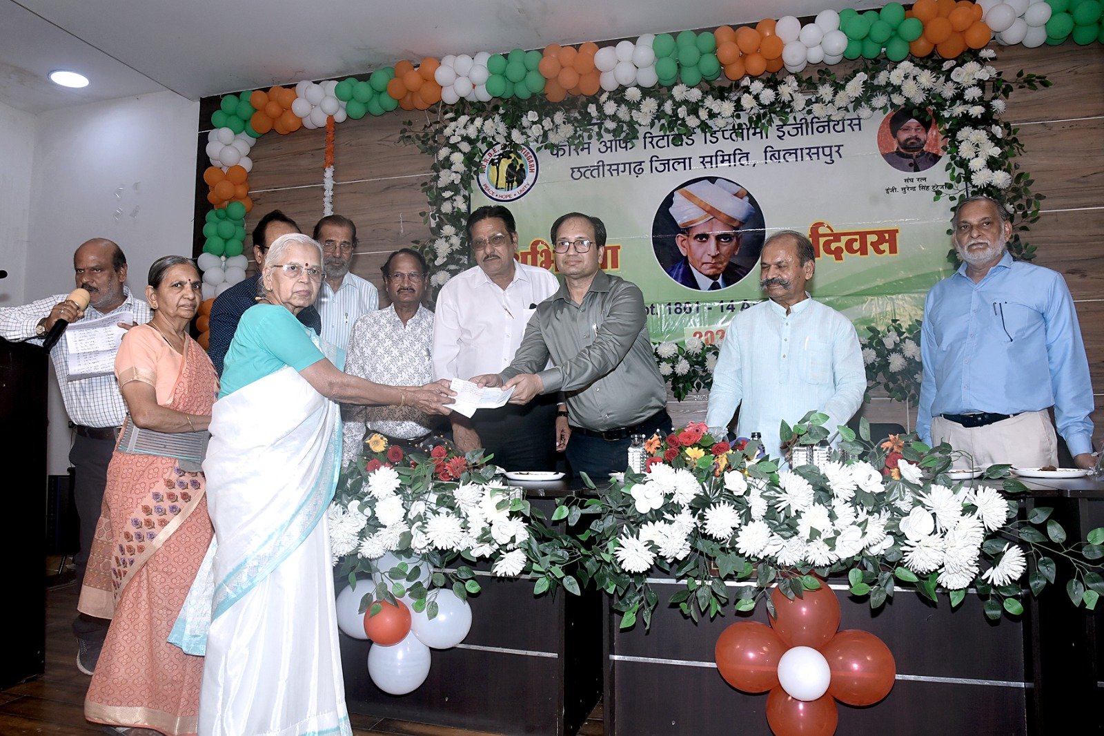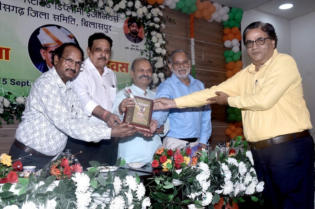 बिलासपुर। अभियंता दिवस के अवसर पर प्रार्थना भवन, सिंचाई परिसर बिलासपुर में गरिमामय कार्यक्रम का आयोजन किया गया। कार्यक्रम में कलेक्टर संजय अग्रवाल (आईएएस) मुख्य अतिथि, PMGSY के सेवानिवृत्त अधीक्षण अभियंता संजय शर्मा अध्यक्ष तथा वरिष्ठ अभियंता इं. सिद्धेश्वर पाटनवार (पूर्व संरक्षक रिटायर्ड डिप्लोमा इंजीनियर संघ प्रांतीय समिति ) इं. एल.के. गहवई (संरक्षक रिटायर्ड डिप्लोमा इंजीनियर संघ प्रांतीय समिति ) एवं इं. महेन्द्र जैन (प्रदेश अध्यक्ष, वंदे मातरम मित्र मंडल ) विशिष्ट अतिथि के रूप में उपस्थित रहे।