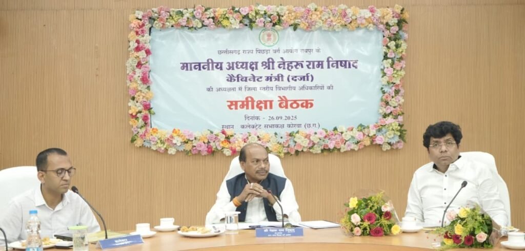 छत्तीसगढ़ राज्य पिछड़ा वर्ग आयोग के अध्यक्ष नेहरू राम निषाद की अध्यक्षता में जिला स्तरीय अधिकारियों की समीक्षा बैठक हुई आयोजित
