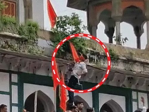 पुलिस ने पहले से मकबरे के चारों तरफ बैरिकेडिंग कर दी थी, लेकिन लाठी-डंडे से लैस हिंदू संगठन के कार्यकर्ताओं ने मकबरे को मंदिर बताकर तोड़फोड़ करनी शुरू कर दी। कुछ युवकों ने मकबरे की छत पर चढ़कर भगवा झंडा लगा दिया।