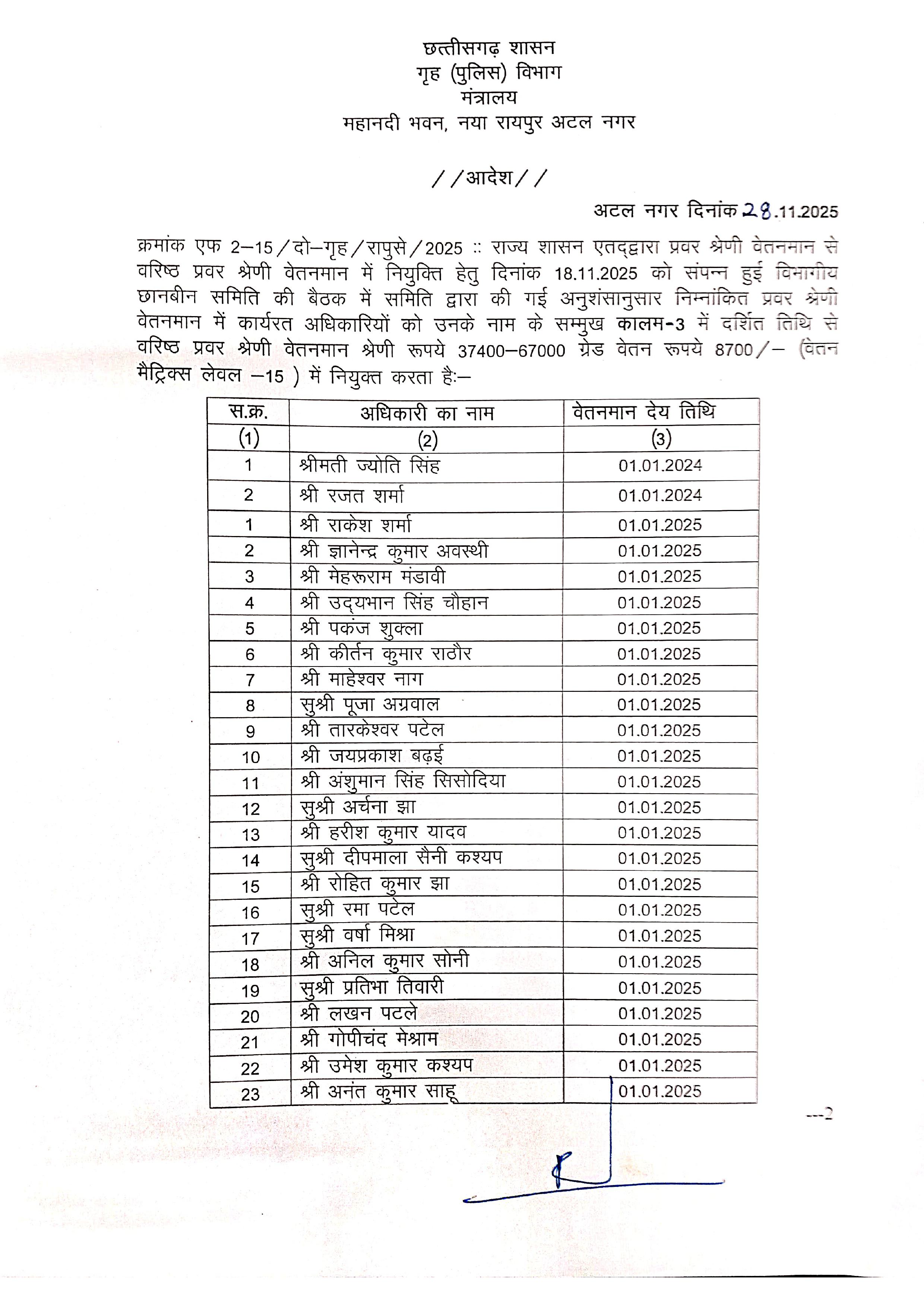 छत्तीसगढ़ में 36 ASP का वेतन बढ़ा:गृह विभाग ने जारी किया आदेश, रायपुर के भी कई अधिकारी शामिल
