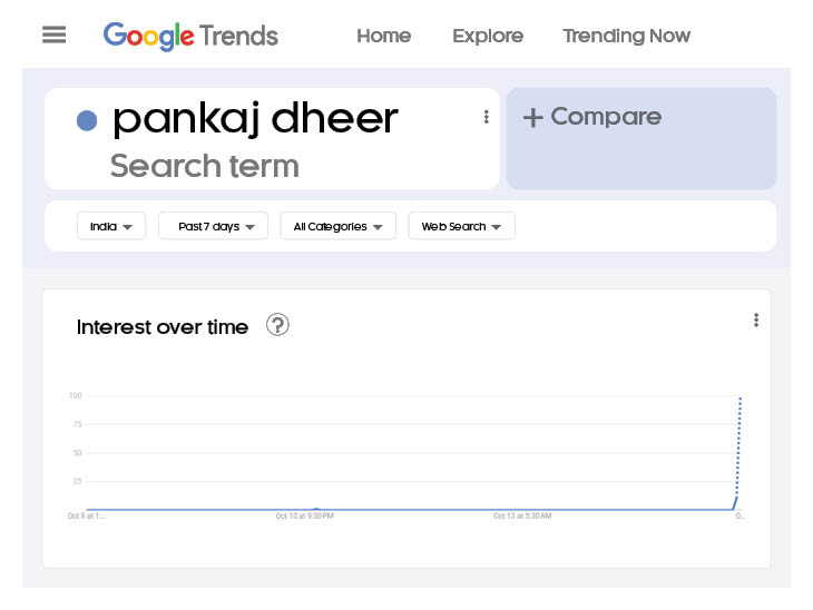 निधन की खबर सामने आने के बाद से ही पंकज धीर गूगल पर ट्रेंड कर रहे हैं। लोग उनके नाम को गूगल पर सर्च कर रहे हैं।