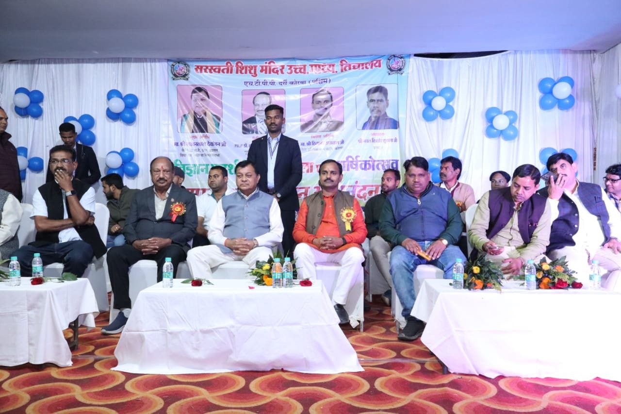 कोरबा। सरस्वती शिशु मंदिर उच्च.मा.वि. दर्री परिसर में लखनलाल देवांगन (कैबिनेट मंत्री, छ.ग.शासन) के मुख्य आतिथ्य एवं पीएमजेएफ लायन डॉ. राजकुमार अग्रवाल (पूर्व प्रान्तपाल, डिस्ट्रिक्ट 3233 सी) व हितानंद अग्रवाल (नेता प्रतिपक्ष- नगर पालिक निगम कोरबा) के विशिष्ट आतिथ्य में विज्ञान प्रदर्शनी, आनंद मेला एवं वार्षिकोत्सव का आयोजन किया गया। कार्यक्रम की अध्यक्षता विद्यालय के प्राचार्य नवल किशोर शुक्ला द्वारा किया गया। सर्वप्रथम पूर्व शिक्षकों एवं पूर्व छात्र परिषद के सदस्यों द्वारा विधिवत् विज्ञान प्रदर्शनी एवं आनंद मेले का शुभारंभ किया गया। जिसमें विद्यालय में अध्ययनरत् छात्रों द्वारा विज्ञान से संबंधित विभिन्न वर्किंग मॉडल बनाये गये, जिसमें चंद्रयान की सराहना सभी लोगों ने की। सायं काल में अतिथियों की गरिमामय उपस्थिति में वार्षिकोत्सव समारोह का आयोजन किया गया। कार्यक्रम में सर्वप्रथम अतिथियों द्वारा भारत माता, मॉ सरस्वती जी की प्रतिमा पर माल्यार्पण कर दीपप्रज्जवलन किया गया। तत्पश्चात् परंपरानुसार अतिथियों को तिलक लगाकर पुष्प गुच्छ से स्वागत कर सम्मान किया गया। दीप प्रज्जवलन पश्चात् विद्यालय के प्राचार्य नवल किशोर शुक्ला द्वारा स्वागत उद्बोधन कर विद्यालय का वार्षिक प्रतिवेदन प्रस्तुत किया। तत्पश्चात् विशिष्ट अतिथि हितानंद अग्रवाल ने अपने उद्बोधन में बताया कि सरस्वती शिशु मंदिर ऐसा स्कूल है, जहॉ बच्चों को भारतीय संस्कार की शिक्षा दी जाती है। वैदिक गणित, सदाचार की बातें गुरूजनों द्वारा छात्रों को दी जाती है। वहीं विशिष्ट अतिथि पीएमजेएफ लायन डॉ. राजकुमार अग्रवालने अपने उद्बोधन में बच्चों को उनके उज्जवल भविष्य की शुभकामनाएॅ देते हुये कहा कि आज बच्चों को सैद्धांतिक शिक्षा के साथ साथ व्यवहारिक शिक्षा का ज्ञान देना भी आवश्यक है। बच्चों में समाज के उत्थान एवं पीडि़त मानवता की सेवा हेतु जागरूकता जरूरी है, इसके लिए शिक्षक इस विषय को भी पाठ्यक्रम में शामिल कर इसका ज्ञान बच्चों को दें। आज के ये बच्चे कल हमारे समाज, देश के कर्णधार बनेंगे। शिक्षा से ही राष्ट्र विकास संभव है। तत्पश्चात् मुख्य अतिथि लखनलाल देवांगन द्वारा अपने उद्बोधन में कहा कि पूर्व छात्र परिषद् सदस्यों द्वारा आज के इस वार्षिकोत्सव समारोह के भव्य आयोजन की जितनी सराहना करें, कम है। आज सभी छात्रों को अपने विद्यालय के प्रति इस प्रकार की भावना और लगाव होनी चाहिए, जो कि आज इन पूर्व छात्रों के द्वारा उदाहरण प्रस्तुत किया गया है। ये सरस्वती शिशु मंदिर स्कूल के संस्कार का प्रभाव है जो आज हम सभी को देखने को मिल रहा है। उद्बोधन पश्चात् सभी अतिथियों का फूल माला, शॉल श्रीफल एवं स्मृति चिन्ह भेंट कर सम्मान 