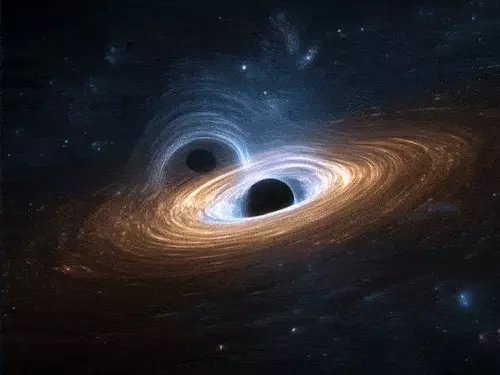 तस्वीर में दो ब्लैक होल एक दूसरे के सामने नजर आ रहे हैं।
