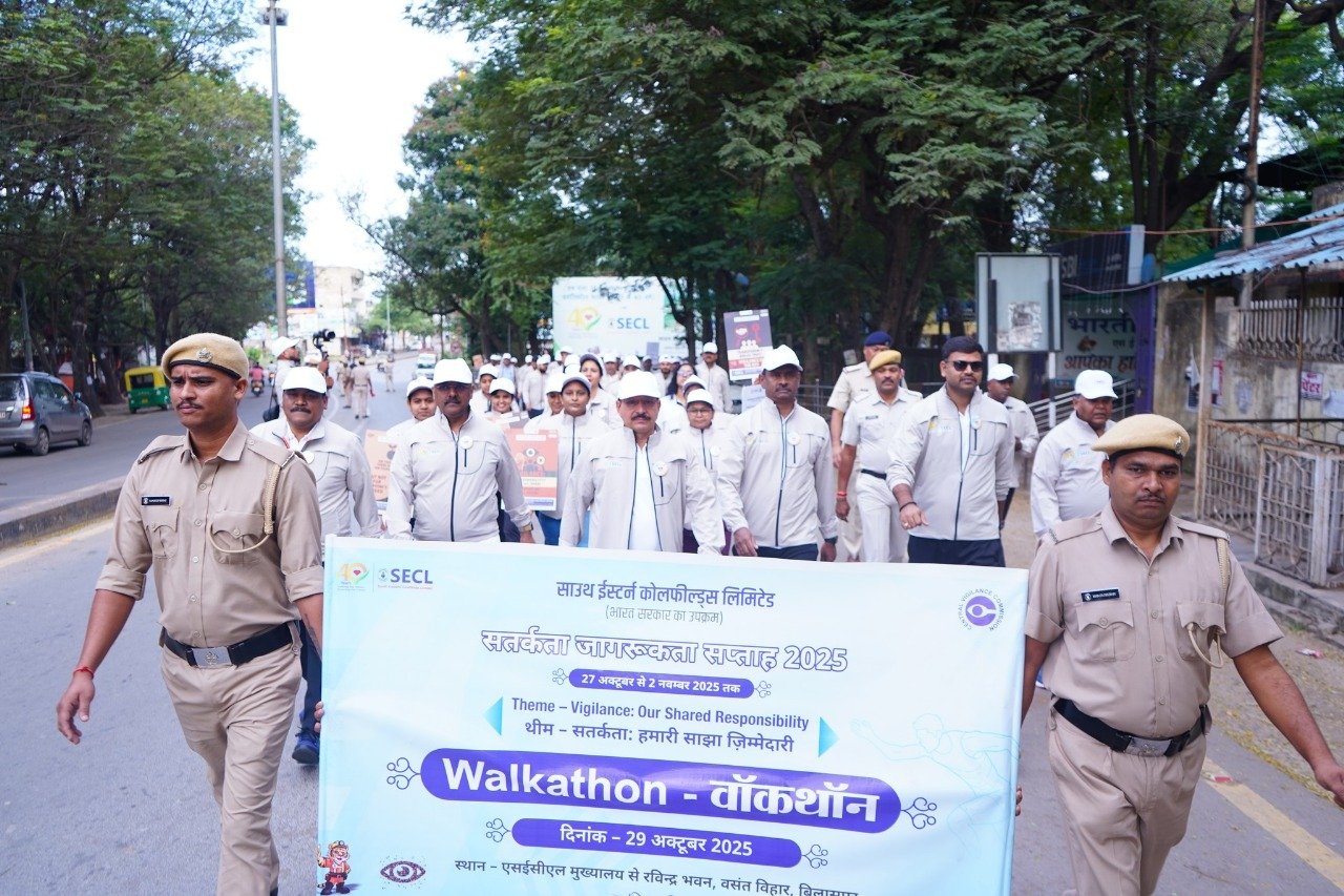 Bilaspur. Under the observance of Vigilance Awareness Week 2025, South Eastern Coalfields Limited (SECL) organized a Walkathon today, on 29 October 2025. More than 100 officers and employees enthusiastically participated in the event, spreading the message of vigilance and integrity.
