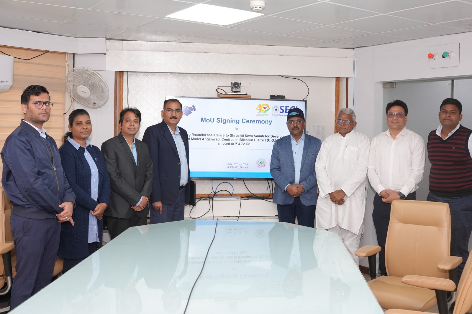 • Development of Model Anganwadi Centres in Bilaspur District SECL has signed an MoU with Shrushti Seva Samiti, Udaipur (Rajasthan) for the development of 200 Model Anganwadi Centres in Bilaspur district, with a total CSR cost of 4.72 crore. The project focuses on upgradation and modernization of existing Anganwadi Centres through improved infrastructure, sanitation facilities, furniture and child-friendly learning environments, strengthening early childhood care and education services and benefiting thousands of children and families at the grassroots level.