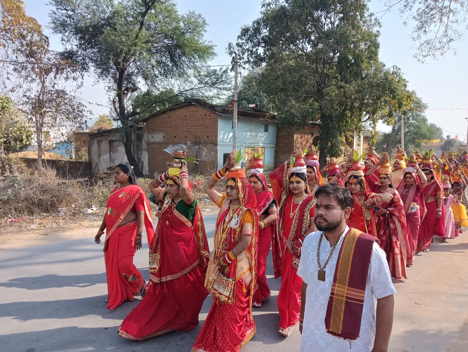 कथा के शुभारंभ अवसर पर निकाली गई कलश यात्रा में सैकड़ों महिलाएं पारंपरिक वेशभूषा में सिर पर कलश धारण कर भजन-कीर्तन करते हुए शामिल हुईं। कलश यात्रा गांव के प्रमुख मार्गों से होते हुए पूरे ग्राम का भ्रमण करती हुई तालाब तक पहुंची, जहां वैदिक मंत्रोच्चार और धार्मिक विधि-विधान के साथ पवित्र जल का संग्रह किया गया। इसके पश्चात महिलाएं सिर पर जल से भरे कलश लेकर भक्ति गीतों और जयकारों के साथ पुनः श्री वैष्णव निकुंज निवास पहुंचीं।