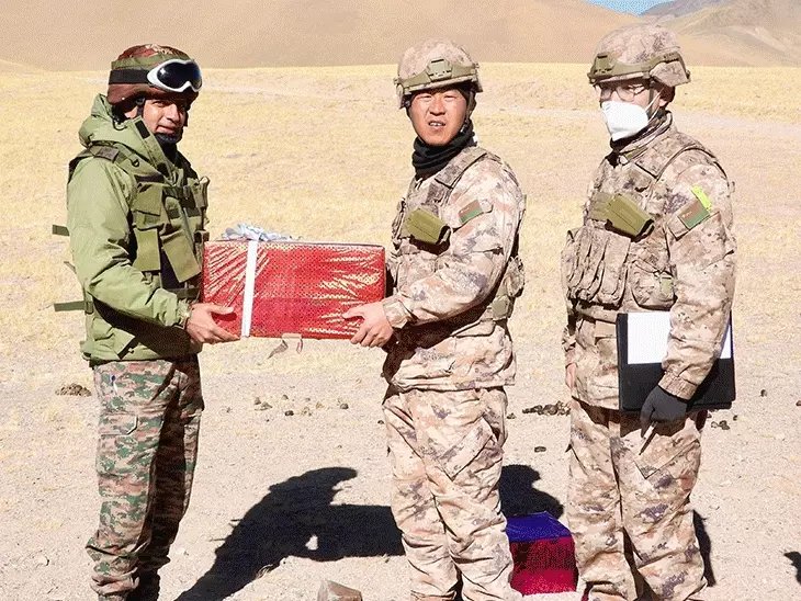 पूर्व लद्दाख के चुशुल मॉल्डो में दोनों देशों के सैनिकों ने एक-दूसरे को गिफ्ट दिए।