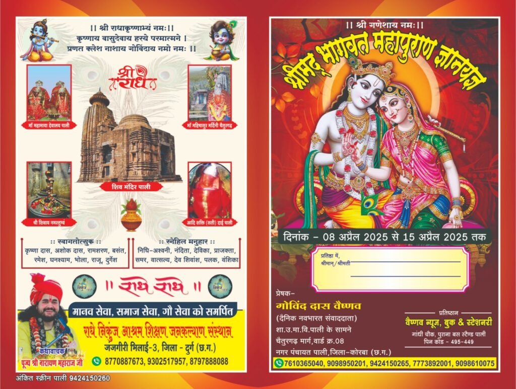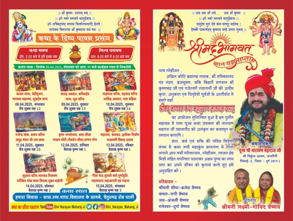 वरिष्ठ पत्रकार कमल वैष्णव के निवास पर श्रीमद्भागवत कथा का आयोजन 08 अप्रैल से