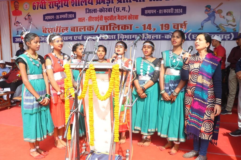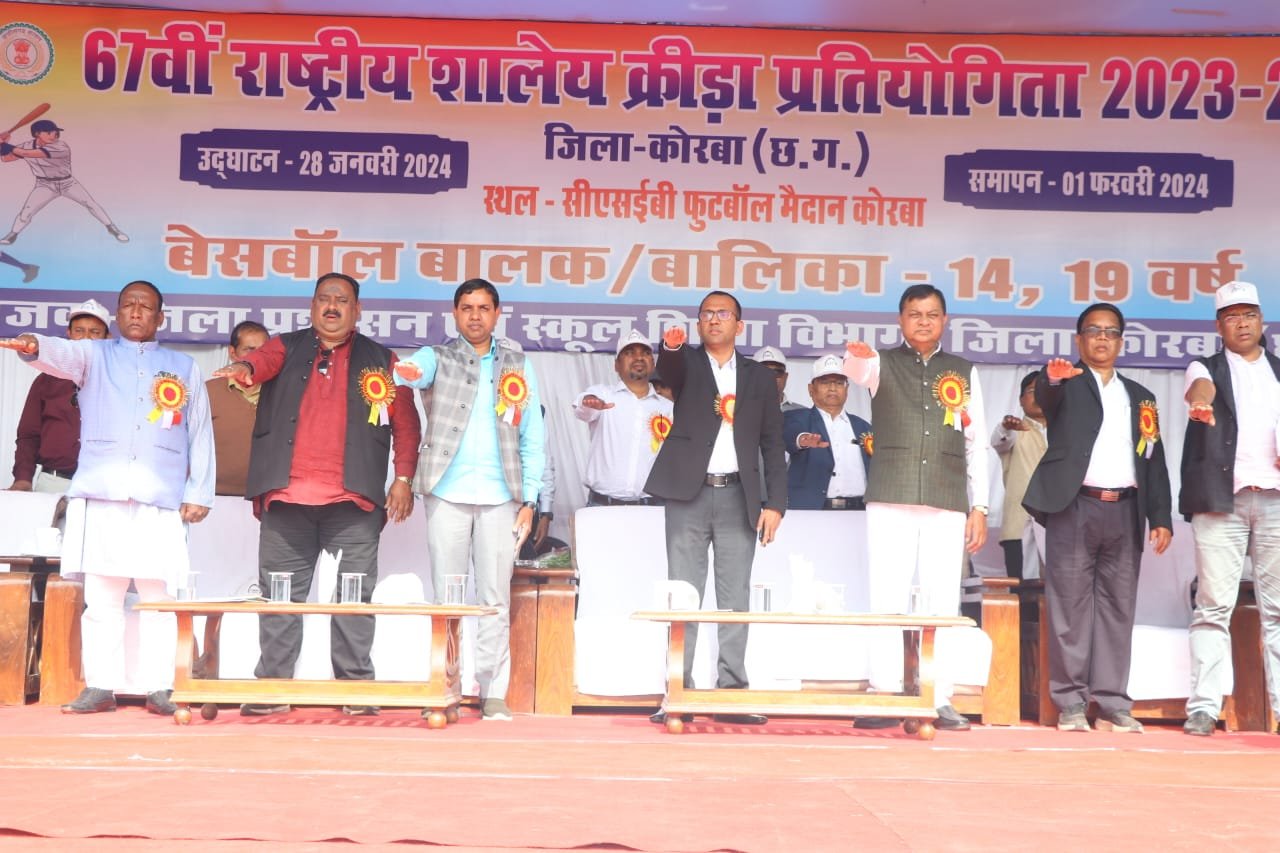 कोरबा। 67वीं राष्ट्रीय शालेय क्रीड़ा प्रतियोगिता 2023-24 का आज सीएसईबी फुटबॉल खेल मैदान में रंगारंग सांस्कृतिक कार्यक्रम और आकर्षक मार्चपास्ट के साथ शुभारंभ हो गया। मुख्य अतिथि लखनलाल देवांगन, वाणिज्य, उद्योग और श्रम मंत्री छत्तीसगढ़ शासन द्वारा पाँच दिवसीय आयोजन का शुभारंभ दीप जलाकर और ध्वाजारोहण पश्चात औपचारिक घोषणा कर किया गया। इस दौरान उन्होंने कहा कि खेल जीवन का वह हिस्सा है जिससे शारिरिक और मानसिक विकास के साथ सफलता की राह में आगे बढ़ते हुए एक मुकाम हासिल की जा सकती है। मंत्री श्री देवांगन ने कहा कि स्कूल में पढ़ाई के साथ खेलकूद में शामिल होकर और अच्छे खेल का प्रदर्शन कर अपना नाम रोशन किया जा सकता है। उन्होंने सभी को संकल्प दिलाते हुए खेल को खेल भावना से खेलने और हारने पर निराश न होते हुए आगे बढऩे और परिश्रम कर पुन: अच्छे प्रदर्शन से सफलता अर्जित करने की बात कही। प्रतियोगिता में 12 राज्यों और दो इकाइयों के बेसबॉल खिलाड़ी हिस्सा ले रहे हैं। मंत्री श्री देवांगन ने खिलाडिय़ों को प्रेरित करते हुए कहा कि कोरबा जिले में राष्ट्रीय स्तर का आयोजन होना बहुत ही गौरव की बात है। यह एक ऐसा माध्यम है जहाँ खिलाडिय़ों को अपनी प्रतिभा को समान लाने के साथ ही आगे बढऩे का अवसर मिलता है। इस तरह के आयोजन से खिलाडिय़ों को अलग-अलग राज्यों के संस्कृति और भाषा-बोलियों को सीखने समझने का भी मौका मिलता है। उन्होंने कोरबा में राष्ट्रीय स्तर के खेल आयोजन पर प्रधानमंत्री और मुख्यमंत्री को धन्यवाद भी दिया। कार्यक्रम में कलेक्टर श्री अजीत वसंत ने कहा कि छात्र जीवन में खेल और पढ़ाई का विशेष महत्व होता है। इस आयोजन में अन्य राज्यों के खिलाड़ी भी शामिल है,यहाँ खिलाडिय़ों को अलग-अलग राज्यों की संस्कृति और भाषा से परिचय होगा। उन्होंने कहा कि भारत विविधताओं वाला देश है। राष्ट्रीय स्तर के खेल आयोजन से एकता की भावना विकसित होती है। कलेक्टर ने जिला प्रशासन की तरफ से सभी खिलाडिय़ों और आगन्तुकों का स्वागत करते हुए कहा कि खिलाड़ी जीत-हार की भावना से परे होकर अच्छे खेल का प्रदर्शन करें और कोरबा,छत्तीसगढ़ से एक सुनहरी यादों को अपने साथ लेकर जाए। स्वागत भाषण जिला शिक्षा अधिकारी जी पी भारद्वाज ने दिया। कार्यक्रम में कोरबा जिले की अंतरराष्ट्रीय बेसबॉल खिलाड़ी नेहा जायसवाल को अतिथियों द्वारा सम्मानित किया गया।