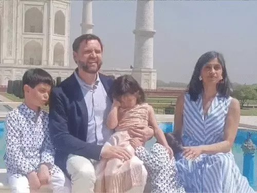 आगरा,एजेंसी। अमेरिकी उपराष्ट्रपति जेम्स डेविड वेंस ने आगरा में ताजमहल देखा। पत्नी उषा, बेटों विवेक, इवान और बेटी मिराबेल के साथ डायना बेंच पर बैठकर फोटो खिंचवाईं। वेंस बेटी को गोद में लेकर ताजमहल परिसर में घूमे। वेंस के तीनों बच्चे भारतीय रंग में नजर आए। दोनों बेटे एक जैसे ट्रेडिशनल कुर्ता-पैजामा पहने हुए थे।