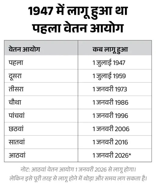 पिछले वेतन आयोग कब बने, कब लागू हुए?