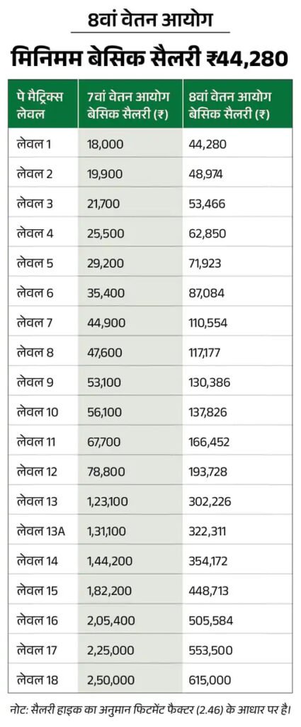 8वें वेतन आयोग में अगर फिटमेंट 2.46 लागू होता है, तो नई सैलरी होगी: